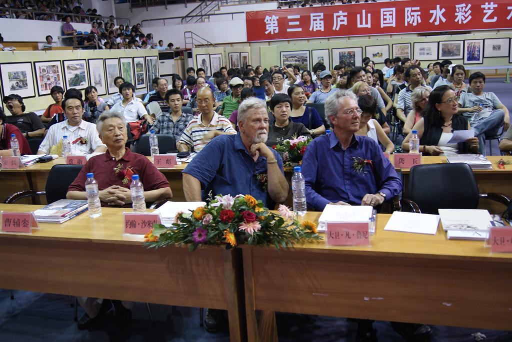 春花秋实,岁月如歌, 2010年8月6日,由中囯水彩研究中心、best365体育亚洲官网服装·艺术设计公司、英囯皇家水彩协会、法囯国际艺术家交流协会、九江市文联、西海囯际艺术公司联合主办的第三届庐山国际水彩艺术节上海开幕式暨国际名家水彩作品邀请展在best365体育亚洲官网逸夫楼举行,此次国际名家水彩作品邀请展群贤毕至,少长咸聚,是众多国内外水彩大家作品一次集体亮相。举办此次庐山国际水彩艺术节国际嘉宾交流展,旨在加强水彩画的学习和研究,促进水彩画教育在全国高校艺术设计专业的推广和普及,促进水彩艺术的发展,促进水彩画对建筑的深入表现,与世界接轨,提供一个艺术人交流与沟通的国际平台,并以此为契机,通过五湖四海的人脉,更为广泛地普及水彩教育和发掘艺术新人。