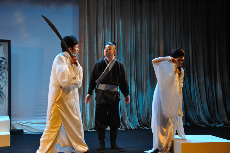 话剧《我爱桃花》是由表演系08级员工邓晴(饰演英子)、张亚男(饰演冯燕)、叶浏(饰演张晏)联袂,演绎了一段古今交错的爱情故事,探讨了在抽刀之后两个情人之间的种种可能性:冯燕自杀,还是把刀放回,一切重新开始......多种可能在古今的时空变换中交替,折射出从古到今人们永远也无法说清的情感问题。许多观众表示,该剧在好笑的同时也能引发深深的思索。