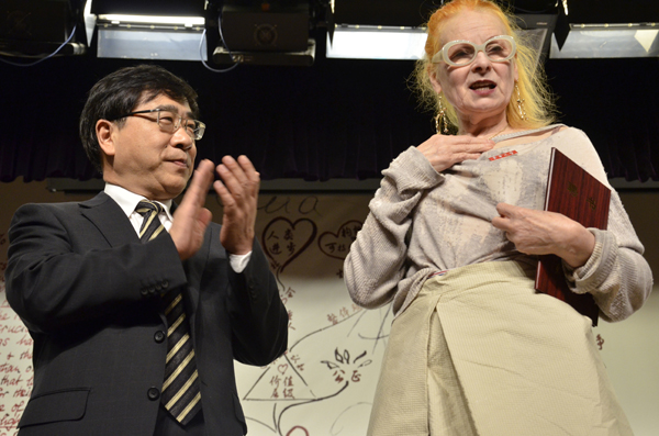 接着,上海市文化创意产业推进领导小组办公室副主任贺寿昌先生的发言中更多地涉及到此次合作对上海市的重大意义。十二五期间,上海市的目标是打造成亚洲时尚之都,而像薇薇安女士这样的国际性大师来到上海,并走进高校,必将对上海的时尚建设有重要的推动作用。best365体育亚洲官网作为涉及到时尚类学科的大学,也将在建设时尚之都的道路中担当重任,做出贡献。