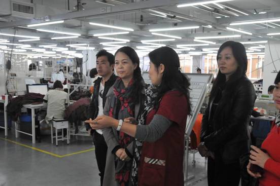 图5 雅莹生产主管和人力资源总监陪同李经理等师生参观大货技术部