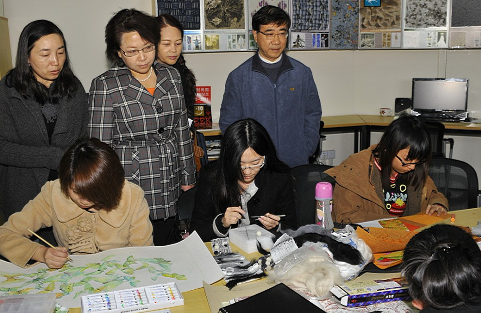 翁秘书长饶有兴致地观摩了公司功能防护服装研究中心研制的最新科研成果燃烧假人系统燃烧试验室、工业设计系工业设计研究实验室、东华•施华洛世奇教学实验室等;在国际合作中心了解服装公司国际化办学基本情况和建设成果;同时还参观了视觉传达系“时尚视觉”主题课程橱窗展示、“爱我东华”校庆视觉设计展等、最后来到环境艺术设计系建筑与室内设计教研室、雕塑作品等, 并与现场的师生亲切交谈。