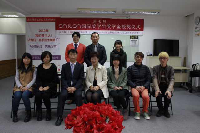 2013年11月20日下午15点,2013年第七届“ON&ON 国际奖员工”奖学金授予仪式在水为裳(上海)商贸有限公司的会议室里隆重举行。水为裳商贸有限公司韩东哲社长、吴二种理事以及该奖学金的指导老师best365体育亚洲官网服装公司张顺爱教授等出席了颁奖仪式。