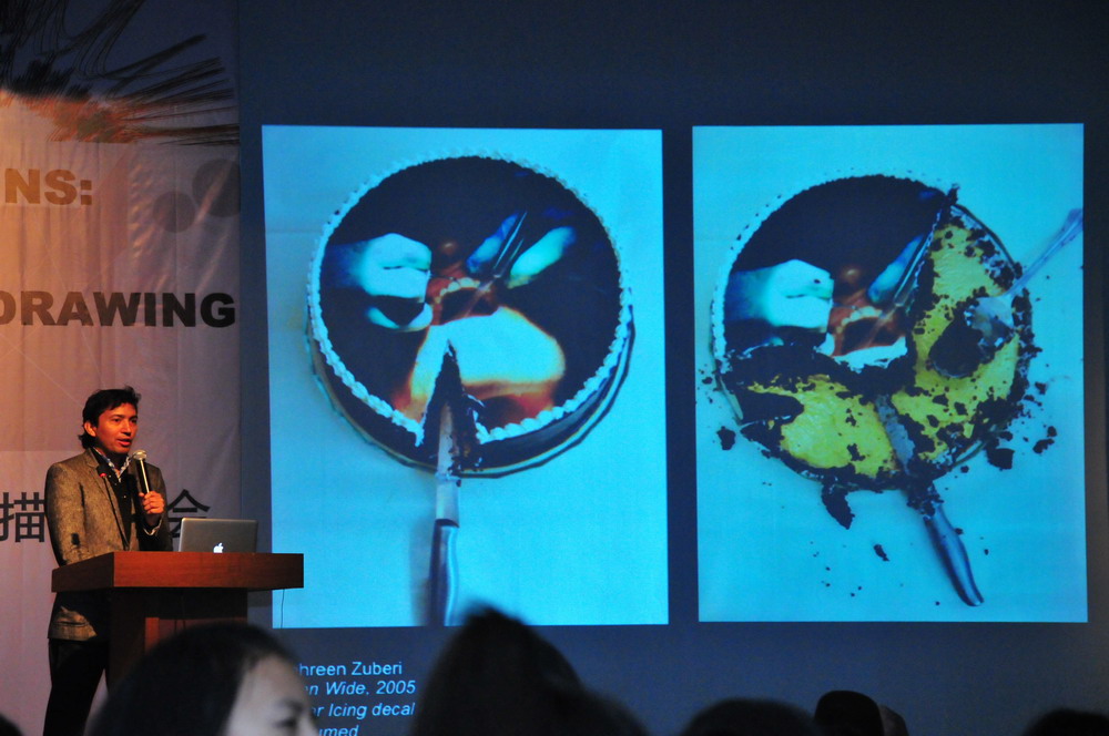 新南威尔士大学的Michael Esson教授结合素描创作与不同领域的关系,讲述他个人的作画经历。上海戏剧公司王邦雄 教授认为“素”是中国传统文化对美的追求和延伸。中国的水墨艺术就是中国的素描。中国的“描”并不是西方的描写,描摹,而是意描、心描。同济大学的朱钟炎 教授带来了《设计中的素描表现》的演讲。来自巴基斯坦的艺术家Abdullah Syed有着西方设计与绘画训练的经历,他的作品一直在探讨如何看待传统文化在当代艺术里的诠释,多元文化政治社会背景将给素描领域带来新鲜的视角和内容。这些素描领域内的艺术家和学者的发言,让在场的师生更加重视素描这一基础的艺术表现形式,获益匪浅。