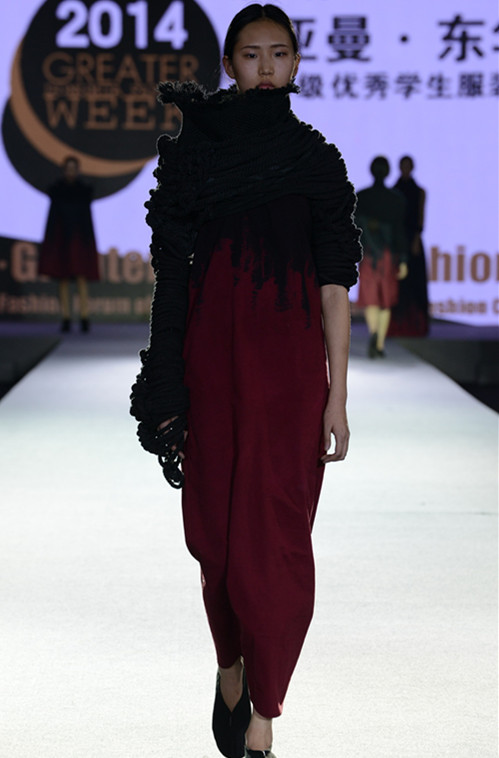 在35组作品中,六组作品脱颖而出,分别是三等奖:5号,8号,23号。二等奖:12号,29号。一等奖:33号。其中5号作品以深灰,浅灰为主色,巧妙地运用了两者相间所形成的条纹丰富了衣服整体,休闲而不失时尚。8号系列采用了亮色花案与白色巧妙拼接,款式简练大方。23号系列将蜘蛛网般的镂空样式大胆装饰于男装的下摆及袖口。12号系列以针织布料为基础,其中带有皮毛裙边的连衣裙给人以甜美活泼的感受,该套系列里还多次出现骆驼的图纹,与该服装色系相映衬。29号系列结构奇特,变形金刚摇身一变成为了模特身上的时尚标志,服装背面出现机械蝎子尾巴形的装饰物,给原本的女装灌入了科幻元素。最后揭晓的是出人意料的钢架衣服,白色金属酷似耳机置于头顶,上面垂下的丝线连接了衣服,融为一体。此次员工们的作品都以简洁的版型为主,通过材料本身的特性来表现作者想表达的含义。