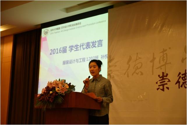 服装公司党总支书记袁孟红致辞,代表公司对前来参会的企业表示热烈欢迎。袁书记表示,公司始终坚持产学研紧密结合,走开放式办学道路,致力于推动公司和企业的共同发展,力争培养具备创新意识、市场开拓能力和娴熟技艺的高素质人才。袁书记还指出,此次就业推进会旨在拉近企业与员工距离,使员工能够深入了解企业对人才的素质要求和招聘过程关键点,为同学们的顺利就业提供指导和帮助。服装公司2016届本科员工代表孙悦同学从员工就业的角度向到场企业嘉宾就职业规划、素质提升等方面提出疑惑。