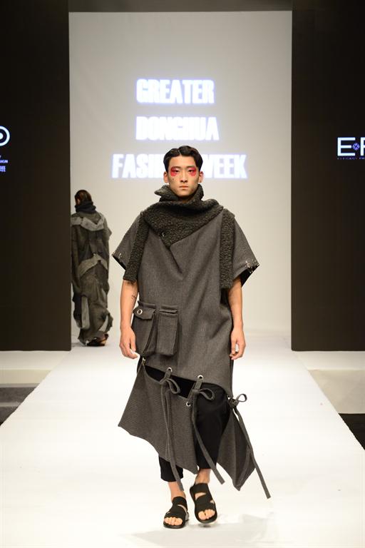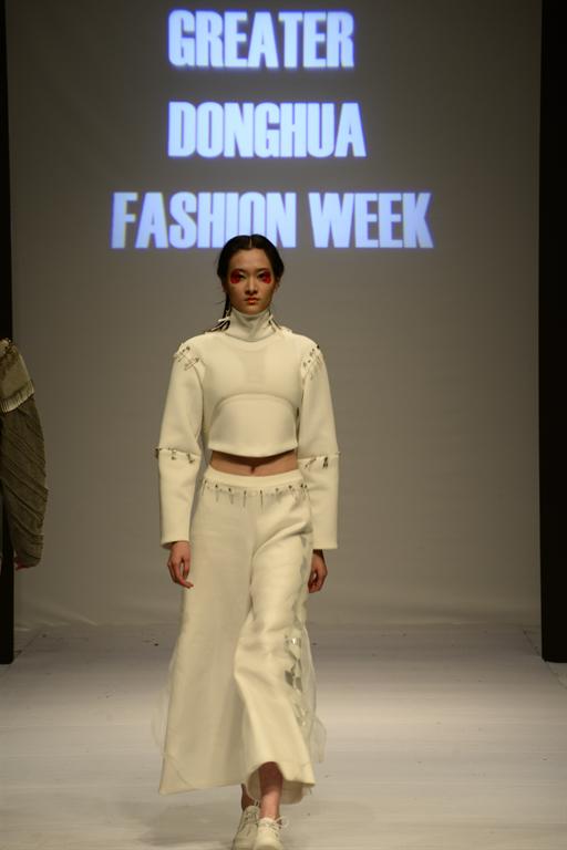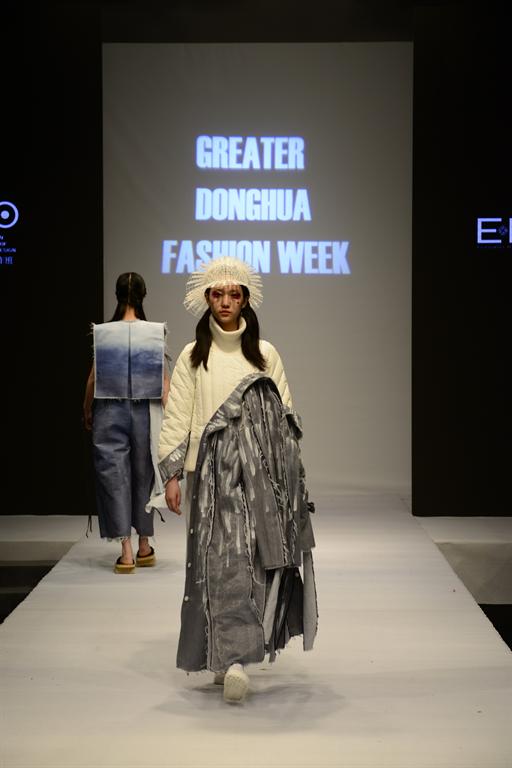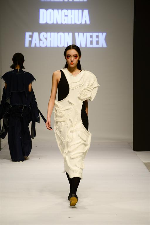 西藏大学的民族风留给观众无限的震撼和回味。紧随其后的,是精彩的2016“雅莹·东华杯”中日合作优秀毕业生作品发布。发布会由浙江雅莹集团有限公司特别赞助,展示了68名毕业生共73套优秀作品。这些作品均为他们在日本文化公司交流学习时期制作,体现了中日合作专业融创新性、时尚性、技术性于一体的办学理念。中日合作班的员工设计师力求每件作品工艺精致,或是运用解构主义实现结构的变化;或是通过染色、印花等多道工序和大量手工制作,对面料进行再造处理,从而达到设计需要呈现的表面肌理和色彩变化效果。