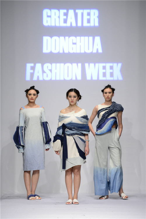 发布会既强调了两个专业的知识结构的交叉融合,也体现了设计作品重视面料处理的倾向性。在作品设计和制作过程中,同学们注重对面料的探索,尝试多种工艺相结合,由此创作出具有丰富触觉和视觉肌理的服装作品。
