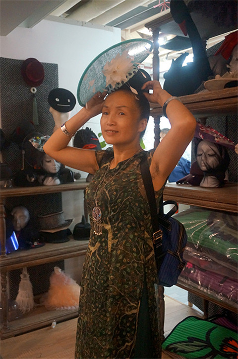 世贸商城六楼的上海金卡诺服饰有限公司是本次学习的目的地。刚刚来到这里,就见到了毕业于圣马丁艺术公司的沈婕老师。沈老师主要以私人订制为主,做传统与现代结合的帽饰和家居饰品,也包括一些手工艺成衣。