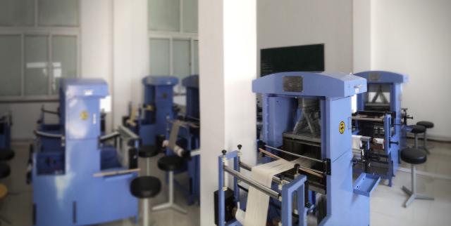 机织实验室是纺织品设计专业及纺织服装艺术类专业教学的重要实践基地,通过学习机织物设计的基本原理,了解机织物的基本结构和织造工艺的基础上,进一步学习各种织物设计方法,设计出有织纹和色彩搭配效果的有一定形式感的织物,以织出符合各种类型织物设计要求的织物小样,为艺术设计类员工设计制作各种类型的织物服饰作品积累灵感,磨练织造技艺。实验室可供相应专业员工进行织造设计工艺基础课程上机实践,为本科生研究生毕业设计以及教师进行教学科研活动提供服务。实验室建设初期有12台电子小样机、一台并捻络筒联合机及卷纬绕纱等设备,实验室面积80平米,可供12-24位同学上机织造。