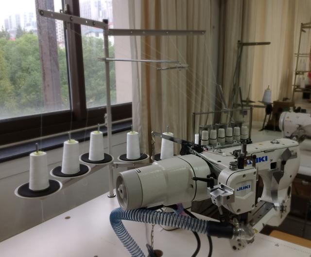 目前特殊缝纫工艺实验室已具备的实验设备主要有:双针平缝机、双针双链缝纫机、曲折缝缝纫机、密拷机、双针四线包缝机、五线包缝机、绷缝机、高速松紧带缝纫机、圆头锁眼机、平头锁眼机、钉扣机、套结机、裘皮拼缝机、吸风烫台等。