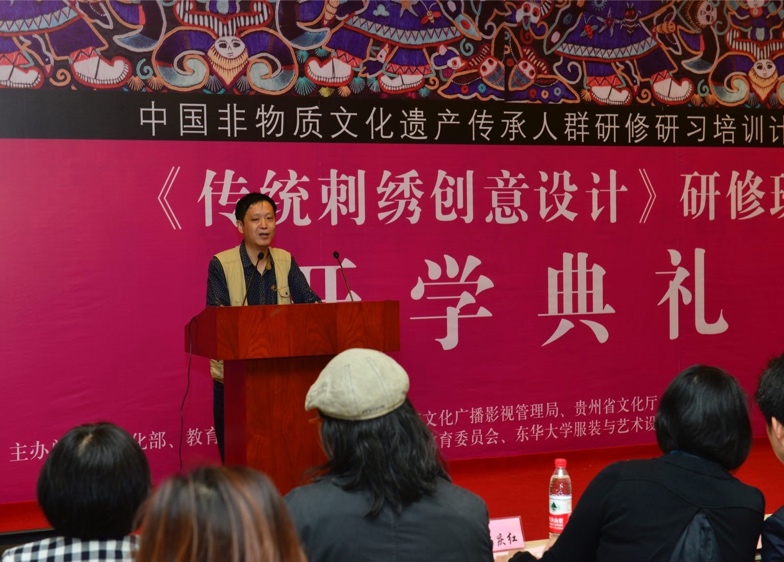 贵州文化处李安鹏副处长在致辞中表达了对本次研修班的深切期许,强调贵州也在着力打造由高校、企业、传承,相互形成三位一体的创新模式,打造新的贵州名片和贵州风情。