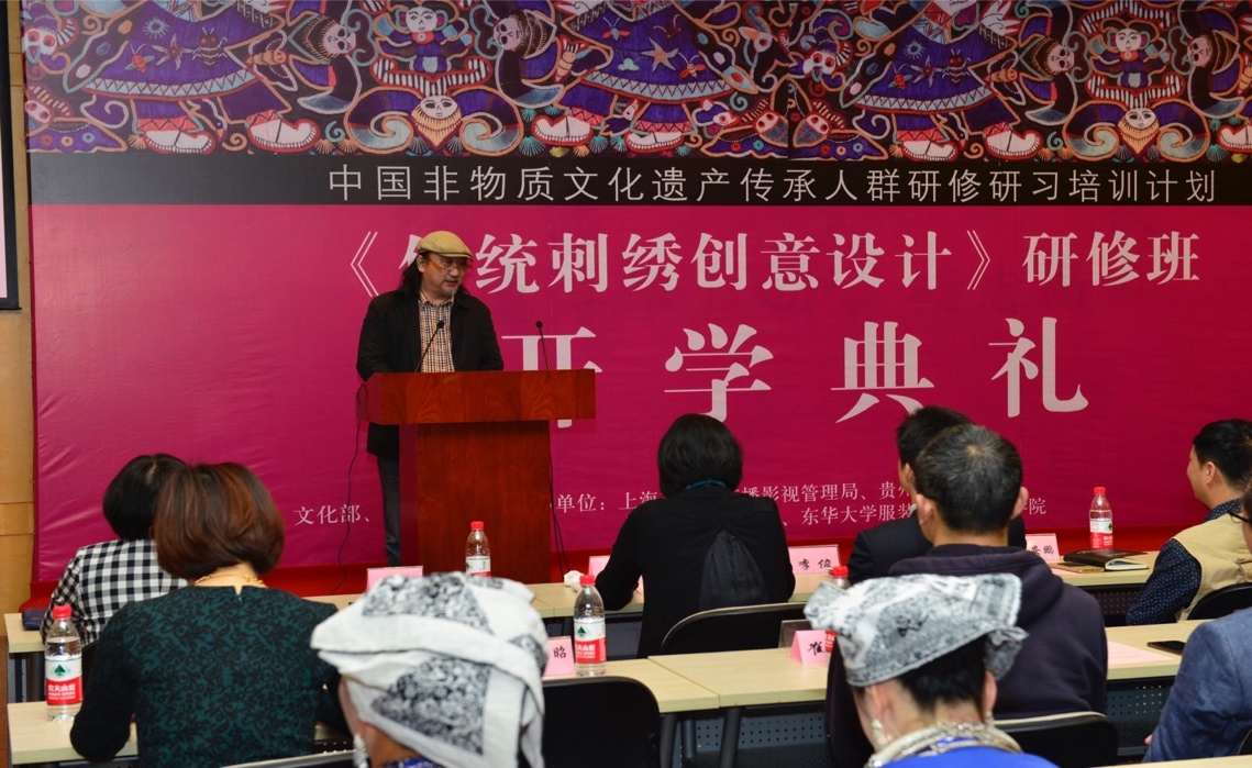 贵州传统刺绣传承人、也是本次研修班班长高成春代表全体学员用纯朴而真挚的言语表达了对所有领导及老师的感谢,以及对本民族刺绣文化的热爱,表明将带领来自于贵州的20多位资深绣娘在此次研修班期间一同认真学习与研究。