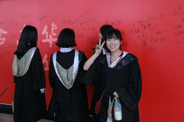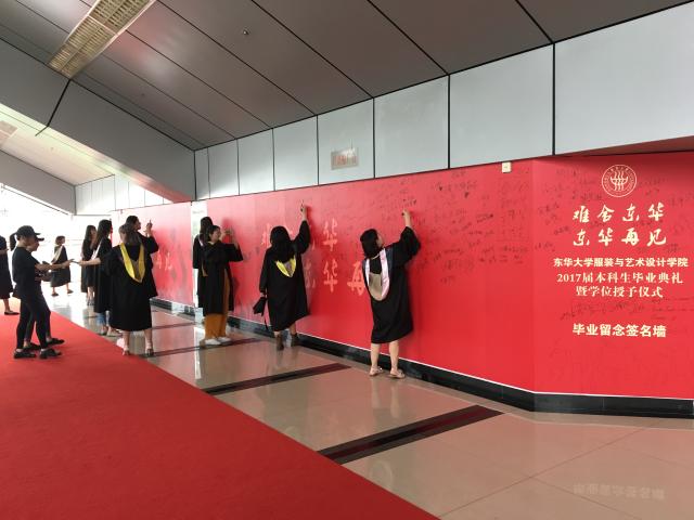 今年的毕业典礼,公司在会场外设置“难舍东华,东华再见”毕业留念签名墙。毕业生纷纷驻足签名留言,记录大学的美好回忆,诉说对母校的热爱与不舍。