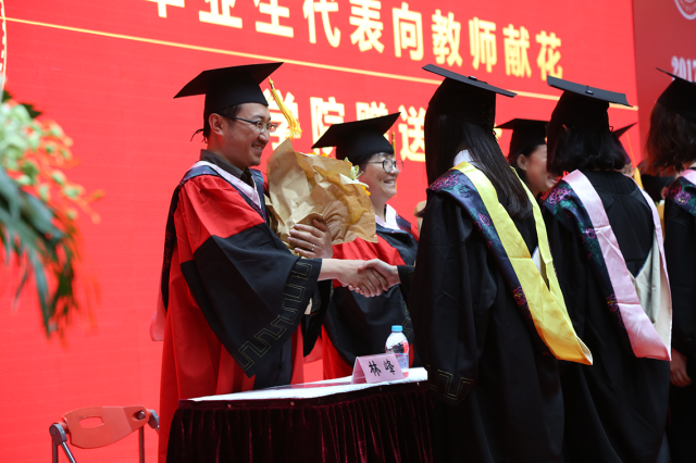作为教师代表,服装设计与工程系张向辉老师表达了她对全体毕业生的祝贺以及衷心的祝愿,希望毕业生们在走上工作岗位后,能踏实、勤学、善思、常怀感恩之心,在工作中经得起挫折,受得了委屈,撑得起梦想。