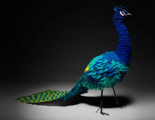 图:回收皮料作品孔雀和鹦鹉