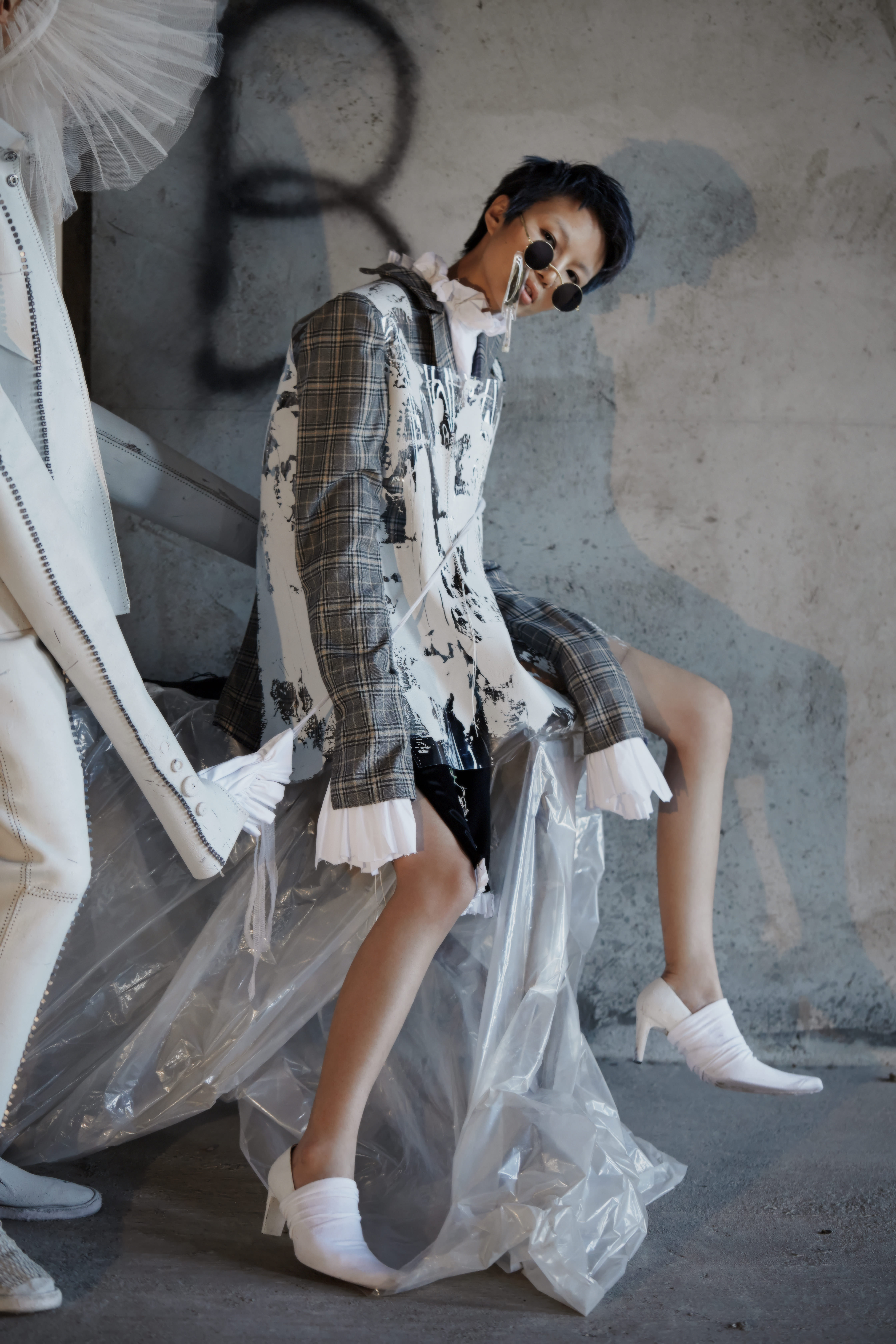 李嘉宝设计作品《Bethlem》,灵感发源于中世纪臭名昭著的疯人院,那里的病人供人娱乐,设计师认为,理智和疯癫并不泾渭分明,有时疯人与常人其实放错了地方。这一系列设计有意模糊了疯人与疯人院游客的界线,利用水泥和绸缎、干花和输液袋等跨界材料进行创新应用,将暗示性的细节元素分布在衣服的各个角落,表达不同的情绪与病症,力求表达病态美学,实则为药的设计主题。“从拿到大赛主题,到寻找灵感,再到自我主题的深入研究跟创作,是一个很有意思的过程,”李嘉宝发现了新的面料再造的可能性,也引发了她对面料再造方面的浓厚兴趣。李嘉宝感谢公司和公司给予的学习平台,“导师周洪雷老师的设计引导,给了我很多帮助,更让我有了新的进步,”李嘉宝表示会好好珍惜巴黎羽饰工坊实习的机会。