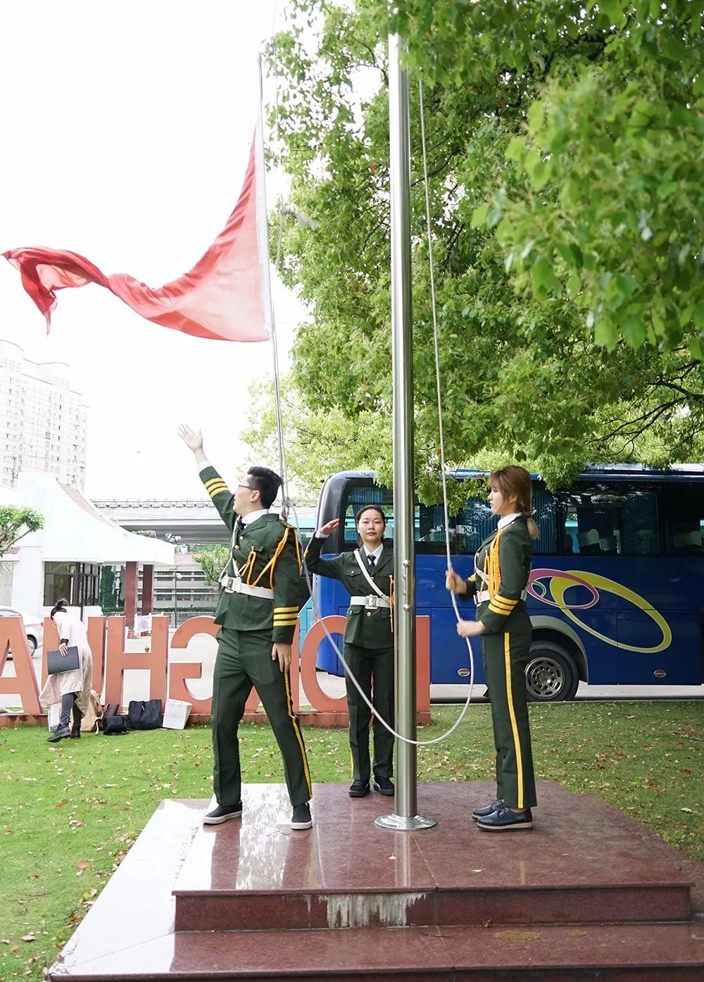 5月5日早上8点整,本科员工党支部在中山西路校门大草坪上举行了升旗活动。伴随着激昂、振奋的《义勇军进行曲》,在本科员工党支部国旗班的带领下,支部全体党员和入党积极分子肃立面向国旗行注目礼,开始了庄严肃穆的升旗仪式。冉冉升起的五星红旗让全体师生再一次感受到身为中国人的自豪之情,激发了大家的爱国热情。爱国是深沉的,也是具体的。每一位青年都将立志为五星红旗增光添彩。