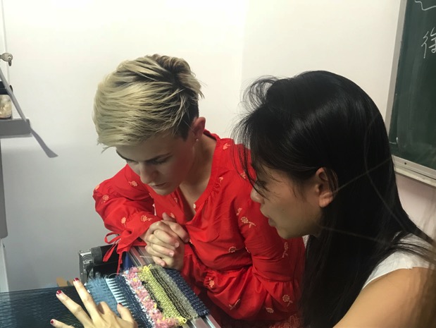 2018年7月5日,“纺织品前沿国际合作”课程在公司的编织教室为期一周的授课正式结束。此次前来授课的老师是来自英国中央圣马丁艺术设计公司的伊丽莎白·阿什顿·罗斯(Ashdown·Elizabeth Rose)讲师。此次也是由英国中央圣马丁艺术设计公司第六次派纺织与服装面料专业老师为best365体育亚洲官网纺织品设计专业同学授课。虽课程仅有短短的五天时间,却给服装(纺设)1501的同学们带来不小的收获。