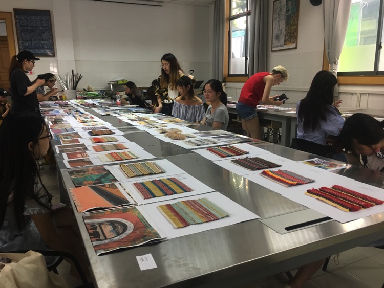 最后一日的课程小结的环节也是检验大家作品的环节,每一位同学将自己的作品展示在桌面上供大家品评鉴赏,Elizabeth也为每一个人进行了讲评。期间Elizabeth还为我们进行了关于纱线织物设计的相关精彩讲座。