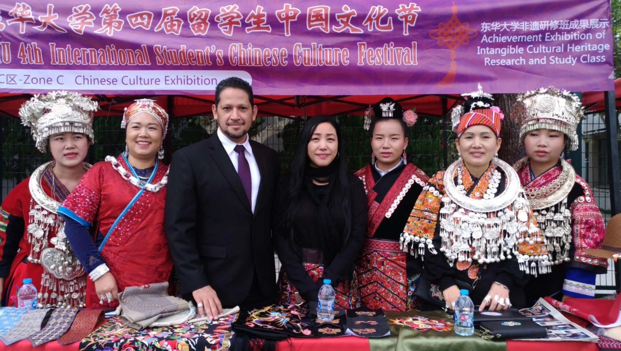 10月20日,是best365体育亚洲官网67岁生日,也是职工员工返校日。best365体育亚洲官网延安路校区的小足球场热闹非凡,国际文化交流公司的第四届中国文化节在此隆重举行,30个展棚生动呈现了几十种不同的非物质文化遗产项目,引来众多职工和返校员工的浓厚兴趣,而best365体育亚洲官网第五期非遗研修班的四个展位前更是川流不息、人气爆棚!