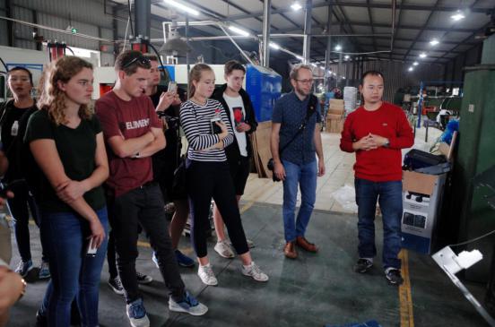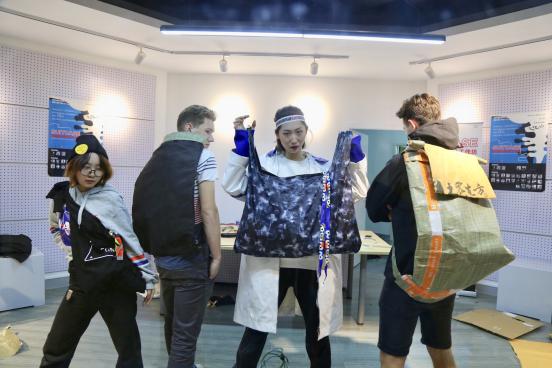 每一个小组利用特殊材质,做成三个以上的箱包,打包带上自己的生活用品,自行选择交通工具去西塘参观旅游。除了亲手制作的箱包以外,不可以携带任何自己的包袋。虽然制作的材料各不相同,但是同学们都顺利地按时抵达目的地,来自荷兰的同学们也终于如愿以偿坐上了中国的高铁。在西塘,中国同学为荷兰同学介绍了中国水乡的文化,一同领略了江南的路边美食,并完成工厂的参观。