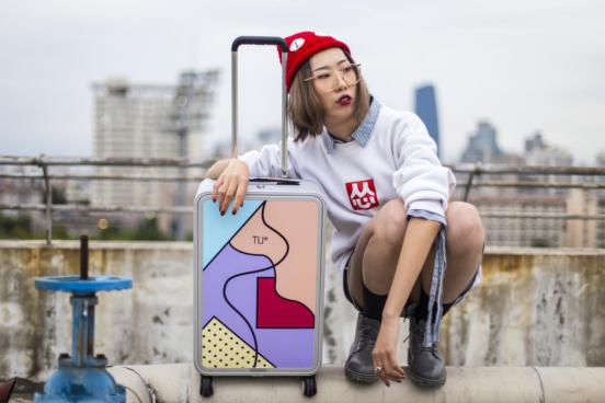 同学们通过对途加用户的了解,选择一个潜在的对照品牌,通过街头的采访,掌握这类用户的需求共性,将所得到的信息用视觉化的手法制作成灵感版,并从中提取元素,设计图案,通过贴图的形式,结合特殊材料的应用,改造已有的行李箱,结合小组视觉形象的设定,安排模特、选择合适的环境,进行大片的摄制。