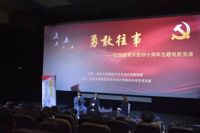 11月27日下午,服装与艺术设计公司党委纪念改革开放四十周年系列活动之《勇敢往事》主题电影党课在虹桥艺术中心举办。活动由本科员工党支部承办,特别邀请到了影片制作人孙广洋,影片主演、公司表演系毕业生潘兴源作为讲演嘉宾。服装与艺术设计公司党委副书记刘燕萍,表演系主任刘健芳,公司党委委员、教工党支部书记徐幸芝,员工工作办公室主任张金鲜,公司党委组织部老干部办公室副主任瞿海燕、张承媛等老师以及公司教工党员、员工党员、入党积极分子、团学骨干共计120余人共同参加了本次活动。