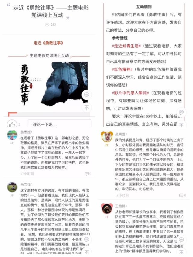 活动结束后,同学们还通过易班平台进行了互动分享。通过本次电影党课,到场师生深入学习了影片中知青群体面对理想、情感和责任时的坚定与执着,了解了主创人员在银幕背后的艰辛与不易,更坚定了同学们为实现中华民族伟大复兴而努力奋斗的决心和信念。