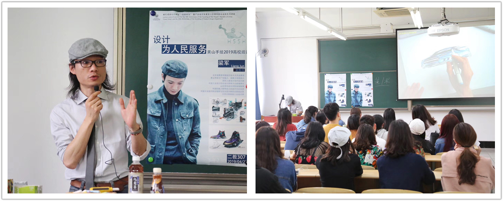 十场专业讲座从4月初开始历时一个月,分别邀请了Faurecia首席设计师王旭,知名球鞋收藏爱好者范耘硕,黄山手绘创始人梁军,润庄品牌咨询执行董事黄智勇,华东理工大学工业设计系系主任王炎,尊品设计创始人薛飞翔,广州红谷皮具研发总监郑杨,全国制鞋标准化技术委员会秘书长张伟娟,上海晨光文具股份有限公司产品经理姜海燕,阿迪达斯配饰设计师陆文婕来校进行分享,堪称一场关于设计的饕餮盛宴。