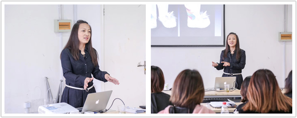 全国制鞋标准化技术委员会秘书长张伟娟在《设计中的标准》中从设计中的标准案例分析入手,对国内国际标准情况、鞋类市场监管和产品质量要求、鞋类标准化发展趋势等内容进行了介绍,并通过列举实例方式与同学们互动,引起同学们的关注,师生的提问贯穿了整个讲座。