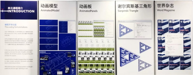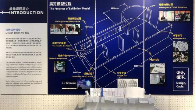 本次课程汇报展览再现了大师班课程的教学过程,主要分为课堂教学展示、员工作品展示、讲座回顾、编程字体动画展示四个部分。