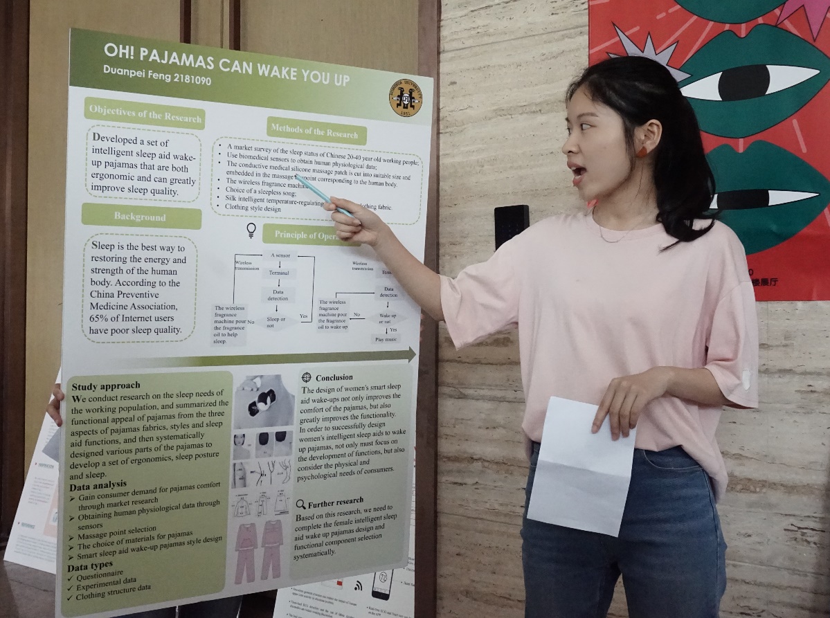 《科技服装概论》为服装设计与工程专业研究生选修课,该课程主要介绍可穿戴技术概念,邀请企业专家、毕业员工介绍可穿戴技术项目,帮助同学了解认识可穿戴技术。课程设计通过文献导读,训练员工文献查阅技巧,建立批判性思维体系,开展批判性阅读。日常进行员工分组研讨,阅读科技服装相关外文文献,并对文章或书本体系进行梳理,做总结汇报。员工还要在课内完成针对科技服装或智能可穿戴设备的研究主题确立、文献查阅、研究技术路线可行性分析、撰写研究计划报告。