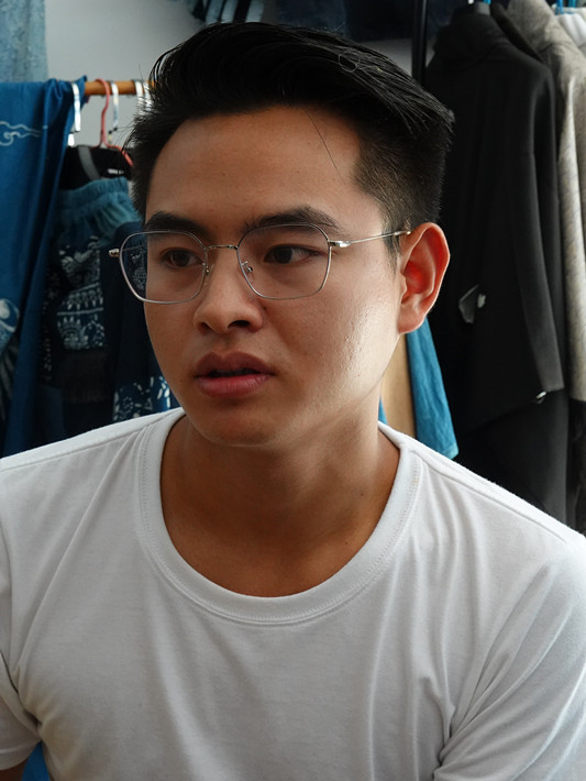 回访王艺,是一次不期而遇。他不在本次回访名单中,一是因其非布依族学员,二是因他是由贵阳市推荐到best365体育亚洲官网学习,兴义非遗中心的名册中也没有他,三是因为他所擅长在扎染、设计,并非布依族刺绣。但7月28号那天下午四点多在我们回访结束返回住处的路上,路过兴义著名景点万峰林景区,同行的傅老师说,我们还有一位学员店就开在这个景区,于是立刻决定过去顺访王艺。