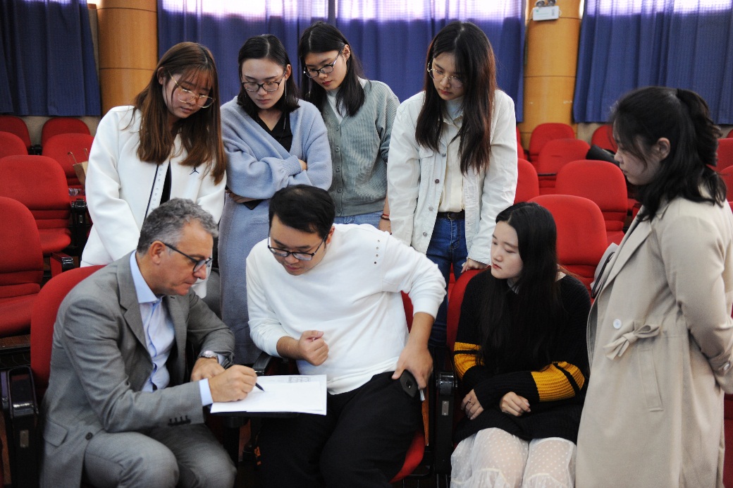 名师荟萃,高手云集!《环境艺术设计学》国际大师课程正式开课了!本次课程邀请到著名的佛罗伦萨大学建筑公司经理、意大利学科古建筑环境学科世界级领军人物文森佐(Vincenzo)教授、上海金茂大厦总建筑设计师欧德•邦德亚力(Guido Giacomo Bondielli)教授、国际著名的设计营销专家陈丁荣教授共同授课,给员工们提供了一次不用出国的“留学”机会。