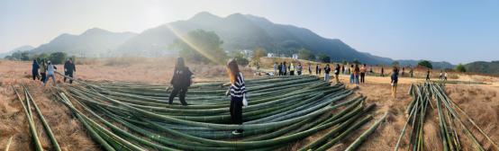 跨专业WORKSHOP课程以“竹建造”为课程基础,员工学习了竹材的属性、工艺、构造等内容,90位员工最终形成25件成熟度较高的方案与模型制作。课程由环境设计系诸葛阳、黄更、王慧明老师指导,校外专业硕士导师周铭奇带队,在淳安县文昌镇人民政府、淳安县千岛湖民宿行业协会的大力支持下,最终的方案在10月23日-10月27日赴千岛湖竹产区文昌镇最终落地,员工们在选料、破竹、基础、捆扎、成型过程中,每位同学都亲自动手,不断优化工艺进行徒手搭建。整个课程过程完成了从概念到最终建造完成,对员工是一次综合性的设计实训锻炼,最终完成的7件作品永久保留在千岛湖畔。