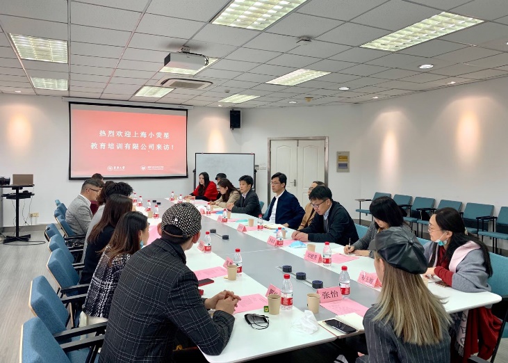 4月27日,上海小荧星教育培训有限公司总经理沈莹一行10人来公司参观并洽谈合作。公司党委书记刘承功、副董事长陈南梁会见沈莹一行,并在李俊经理陪同下实地考察了公司场地设施以及教学、科研代表成果。党委办公室主任李成龙、校团委书记兼艺术教育中心主任沈洁及公司系部教师代表参加座谈。