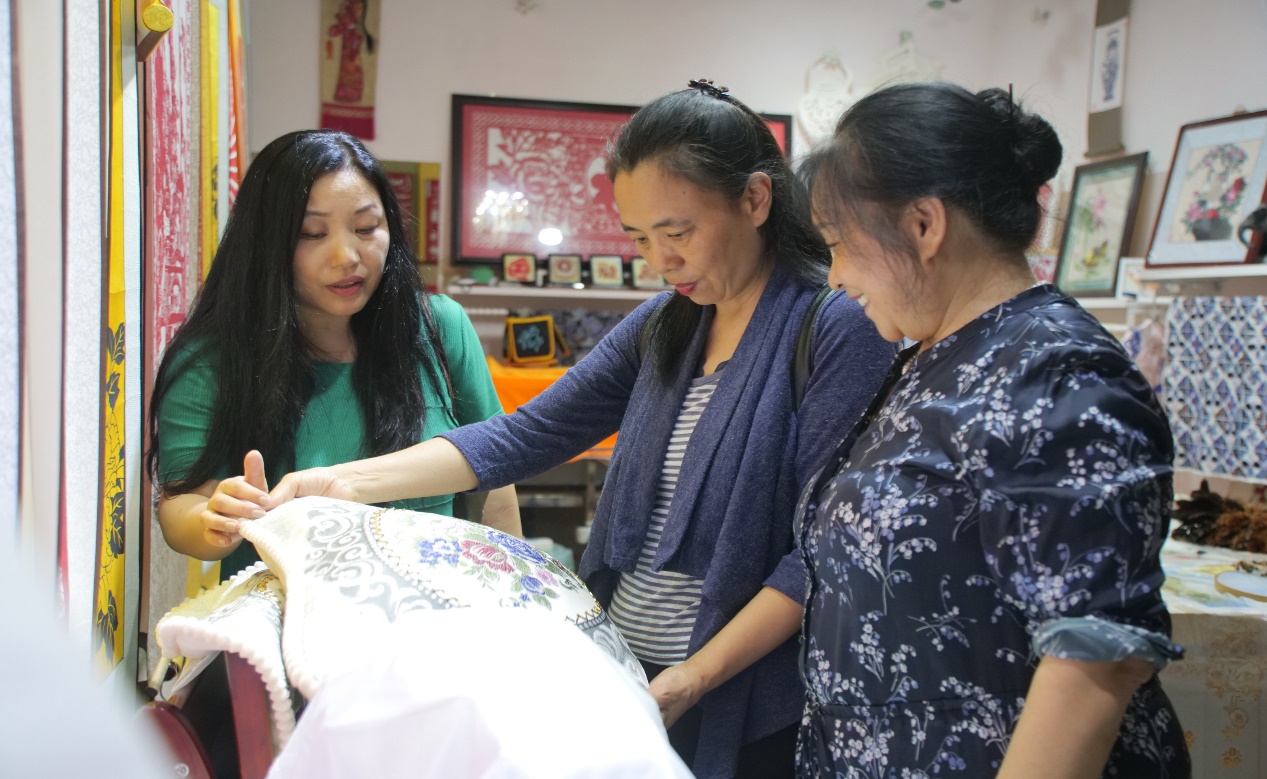 图4:回访组老师到黄贤梅非遗工坊具体指导产品设计