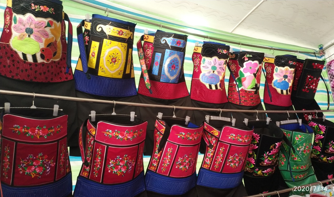 杨绪莲自豪地介绍自己有八个姐妹,从300元起家到现在的两爿店面:一个由老公主营农机具;一个自己负责,主营服饰、家纺。店里最为闪亮的一角正是杨绪莲和儿媳妇亲手绣制的背扇(背儿袋,图2)。令人感到可喜的是儿媳妇身为老员工聪明好学善思,在婆婆的熏陶和传授下,对刺绣非遗表现出了浓厚的兴趣,有些技艺甚至已超出婆婆。和睦幸福的生活,令杨绪莲心满意足。婆媳同心,一起设计背扇的纹样和刺绣技法。说到best365体育亚洲官网的研修,杨绪莲动情地说:“best365体育亚洲官网的学习给我很多启发,如果早10年去东华,我的生活定会比现在好上若干倍!”