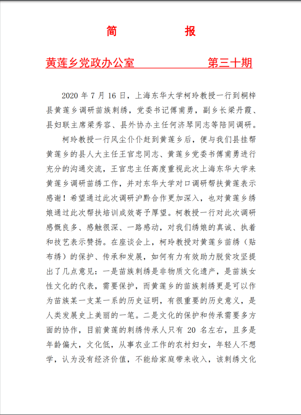 附1:《黄莲乡工作简报》