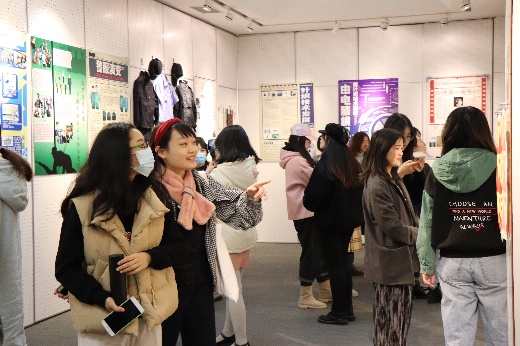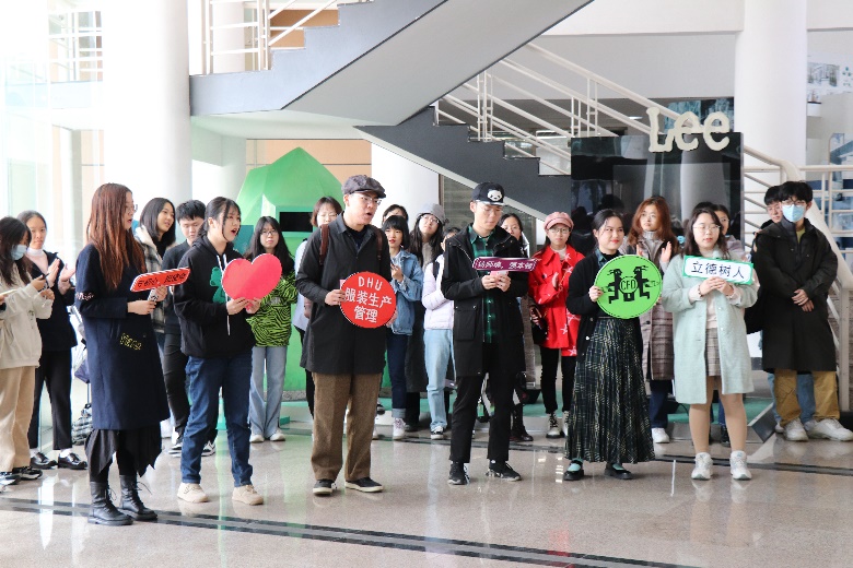 开幕典礼现场,本次展览的参展人员、服装设计与工程系18级的同学们自发组织快闪活动,共同唱响《我和我的祖国》,献礼建校七十周年,将开幕式气氛推向高潮。来自服装企业生产制造及供应链管理领域的员工张明杰、赵军、崔琪、许谊、温韬、晏姿柔、孙颖慧、李逸珺等也通过视频介绍了服装生产管理在工作中的应用,并为课程展送上祝福。