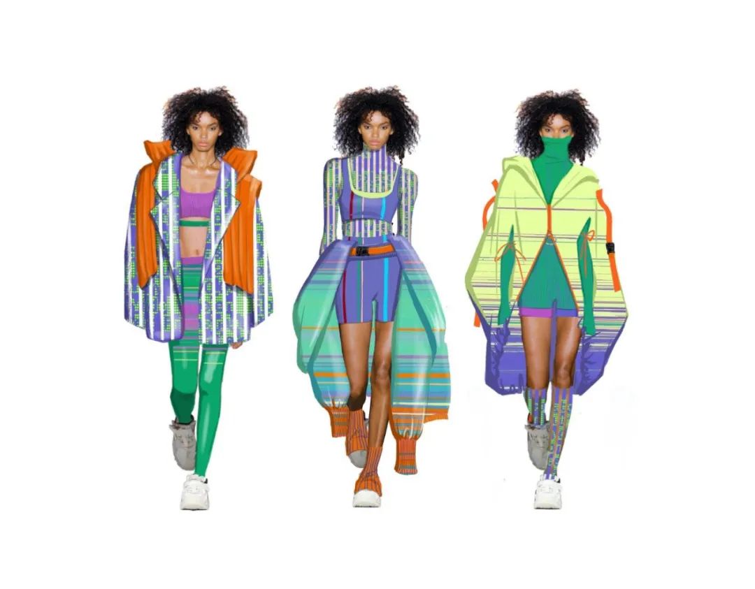 黄林艳同学的获奖作品《未来通勤者》,基于疫情的现状,引发对生活方式转变的思考,传达了一种多场景运动的概念,让着装者实现在室内运动和户外探险之间的自由转换。获奖同学在倪军老师的指导下,历时六个月,克服了针织技术上的重重困难,完成了本次参赛作品的创作与实现。