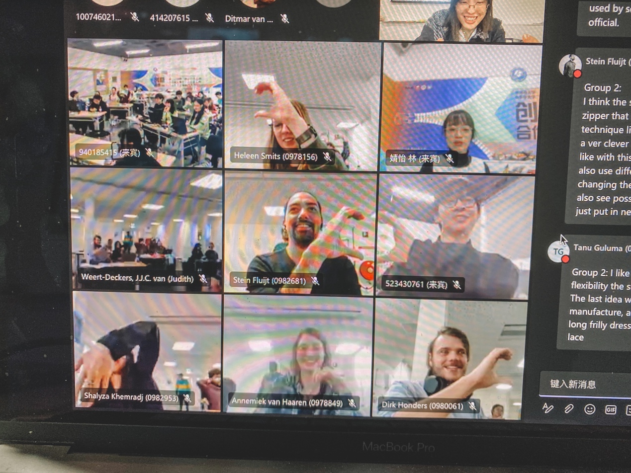 工作坊打造全英语交流的语境氛围,跨学科背景的思维互动,企业导师全程参与指导的交流环境,打造以“中荷员工小组+中荷导师+伟星集团设计师导师“的组成6只设计团队,如图4所示,通过“限时汇报”、“限时反馈”、“限时风暴”、“限时打分”等形式从各自擅长的专业领域的角度思考,集思广益,突破传统,创造未来,伟星集团的设计师团队也分别在上海和荷兰全程跟踪指导,结合行业经验,提出多维度的建议,帮助员工们从天马行空的想法深入到更加切合实际的概念,并且挖掘更深层的设计点。