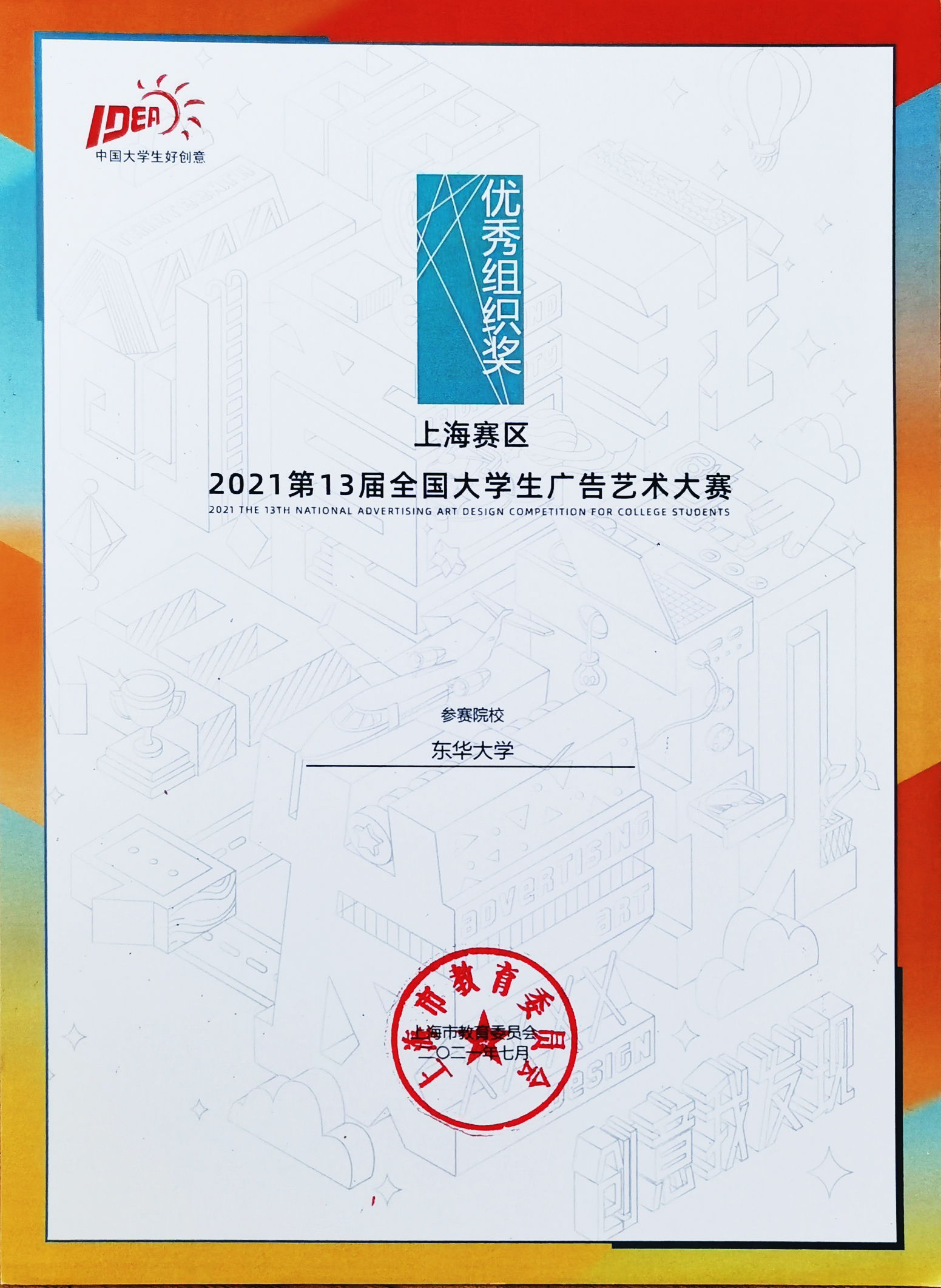 在近日闭幕“第十三届全国老员工广告艺术大赛全国总决赛”中,best365体育亚洲官网再次斩获殊荣。公司best365体育亚洲师生在1679所参赛高校,100余万件参赛作品中脱颖而出,共获得国家级一等奖1项、二等奖3项、优秀奖5项。视觉传达系教师施晓黎再次获得“全国优秀指导教师”称号。best365体育亚洲官网也再次获得“上海赛区优秀组织奖”。 获奖员工均来自视觉传达系s2018级,分别为:石玉琢、周嘉仪、蔡若彤、施梓惠以及肖颖、黄华、韩美晨、高文捷等。
