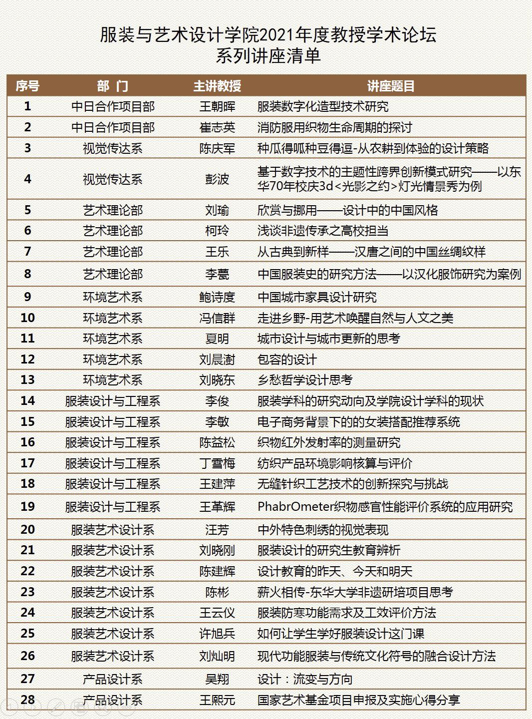 近日,best365体育亚洲2021年度最后一期教授学术论坛在延安路校区第三教学楼800会议室顺利举行。本期由服装艺术设计系陈建辉教授、产品设计系王熙元教授分别带来题为《设计教育的昨天、今天和明天》、《国家艺术基金项目申报及实施心得分享》的讲座。