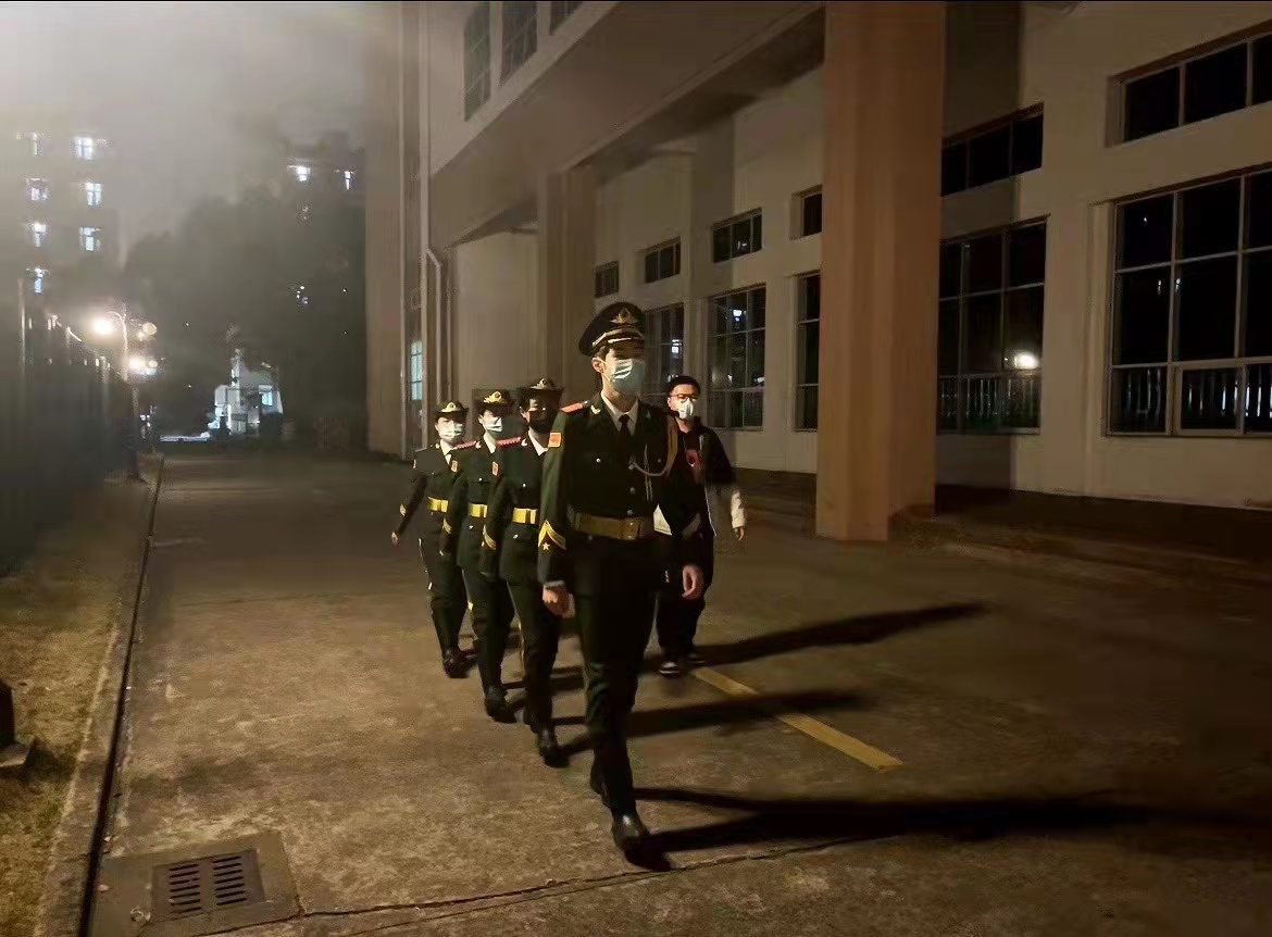 公司国旗护卫队党支部主动请缨,承担了在夜间23点到24点一天中最后一小时的校园巡逻工作,深入校园的每一个角落,避免聚集活动的发生。同时支部党员还主动报名投入到全员核酸的志愿服务工作中,用身体力行的姿态做好榜样的作用,发挥“退役不褪色”的军人气魄。深夜里,best365体育亚洲这一抹绿色照亮了夜晚的校园。