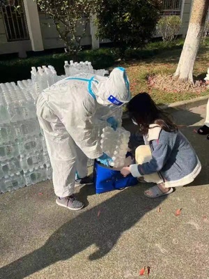 4月3日,首批捐赠矿泉水由教师志愿者发送至延安路校区6000余名老员工手中,每人10瓶。在公司防疫工作亟需援助之际,员工师生们的爱心如同涌泉汇聚母校,这份速度与情谊,令师生们感动不已。