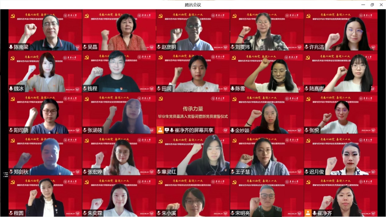公司进行封闭管理后,员工党员主动亮身份,凝聚起强大的抗“疫”合力。广大党员在疫情防控期间彰显党员本色,将初心写在一线,毕业生党员代表、抗疫先锋程圆认为,这次经历让她看见了党员的赤诚与担当,使她获得了迅速的成长,自觉肩负起时代新人应承担的责任与使命。在校生党员代表、抗疫先进个人郑剑秋表示,作为新青年,必须在奋斗中砥砺意志品质,在实践中增长本领才干。国旗护卫队党支部党员用自己实际行动迎接二十大,展现了在青春赛道上奋勇拼搏的身影。员工也用艺术的方式,将奋斗经历和对自己的期许制成画作送给母校。员工处副处长赵彦明代表公司接受了员工画作。在毕业生党员重温入党誓词暨新党员宣誓仪式上,新发展党员在老党员的榜样带领下,对自己身份有一个更加全面的认识。让入党初心常念常新,让入党使命常履常行。