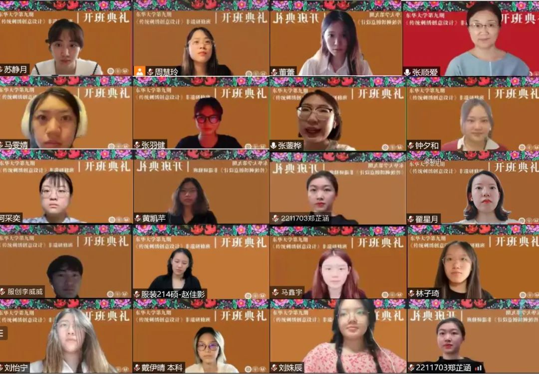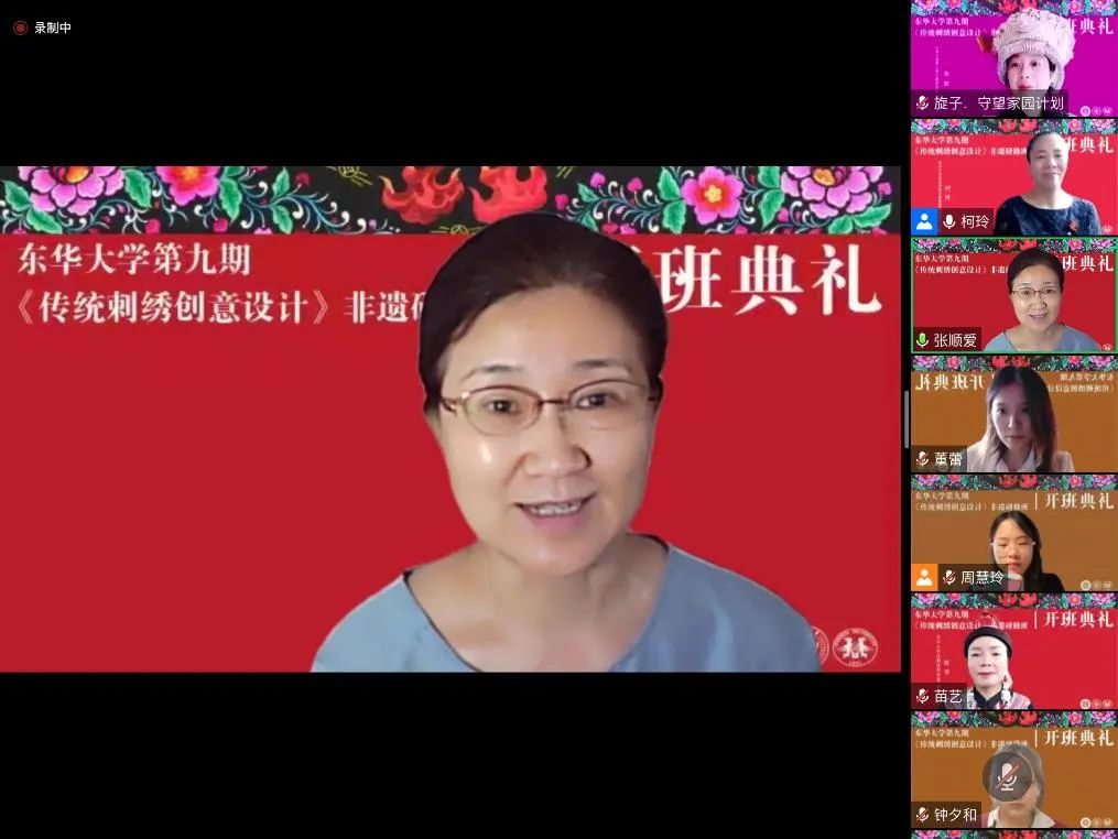 东华非遗研培走到第九期,专一、专著、专业的东华特色已经形成。采用线上线下结合的授课方式是一次全新的尝试,或许也是一个全新的开始。成长与发展之路上,必然面临挑战,但我们坚信若是手挽手、肩并肩一起前行,大家共同浇灌的非遗之花定会越开越枝繁叶茂。