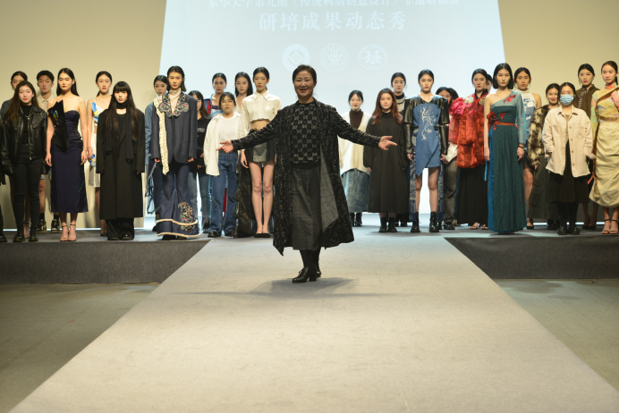 陈南梁教授在致辞中谈到,东华非遗研培专注传统刺绣创意设计,显示出针对性与专业性,研与培取得了双向丰收。他称赞克服困难完成学习的研培学员和东华师生为“勇敢的逆行者”,鼓励学员们在今后利用所学知识,创作出更多精品力作。