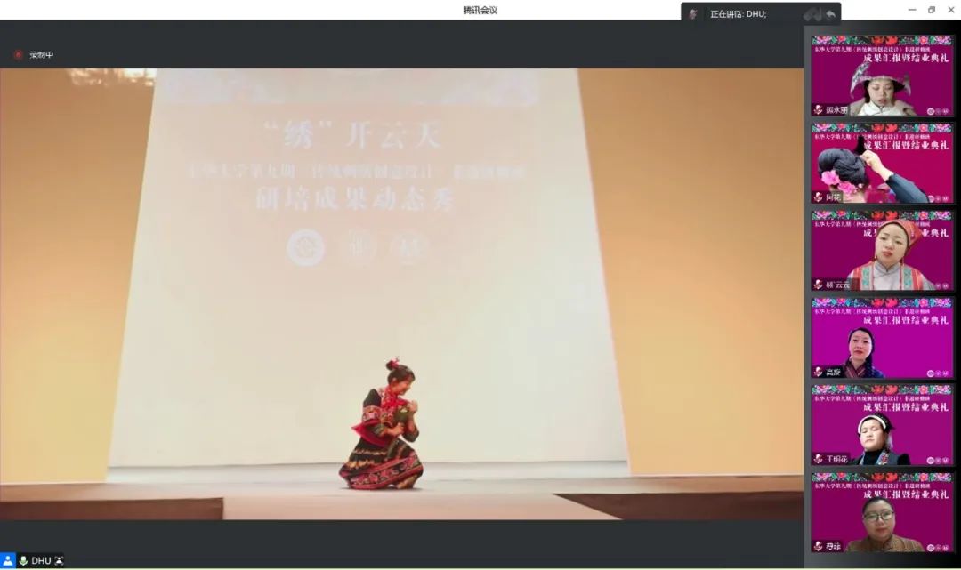 本次典礼暨成果汇报共设置云端回首、领导致辞、静态展呈现、师生代表发言、颁发证书、动态秀演、嘉宾点评等七个环节,由best365体育亚洲非遗教研中心主任柯玲教授主持。
